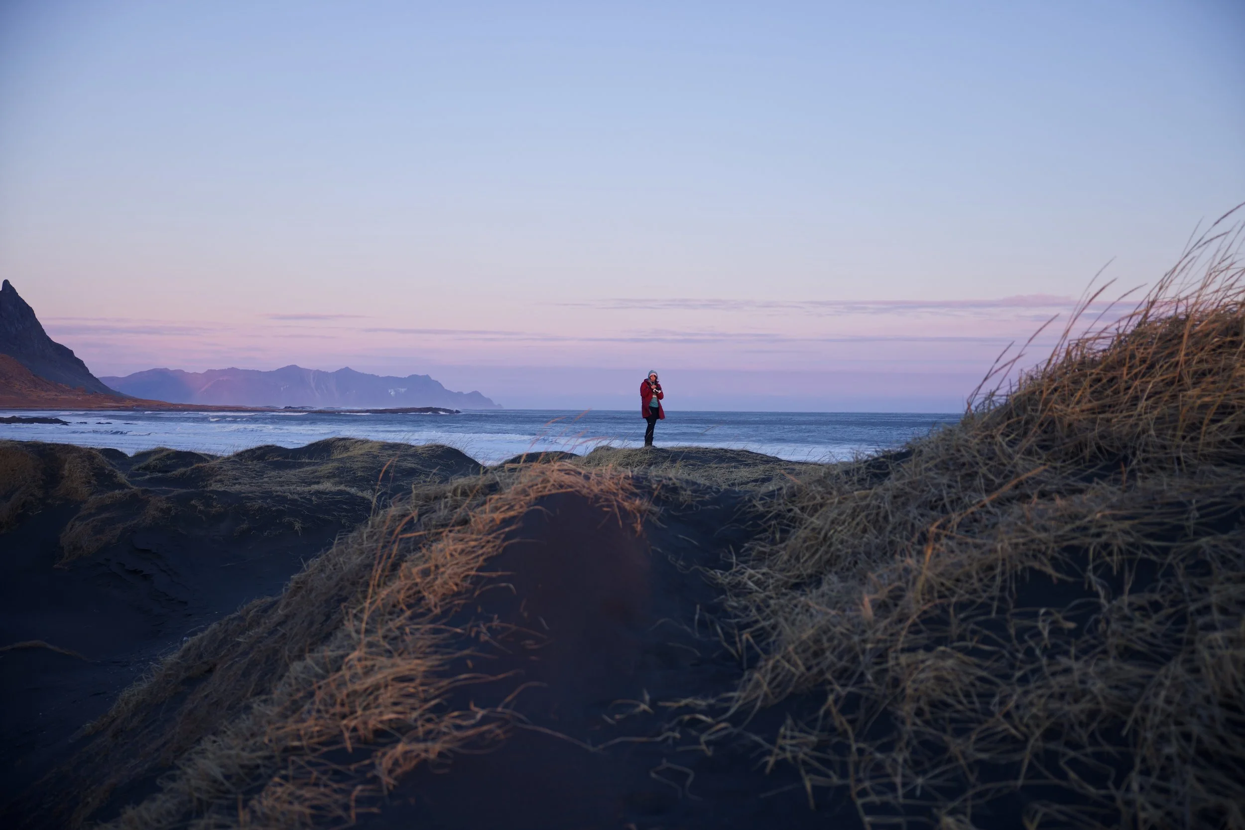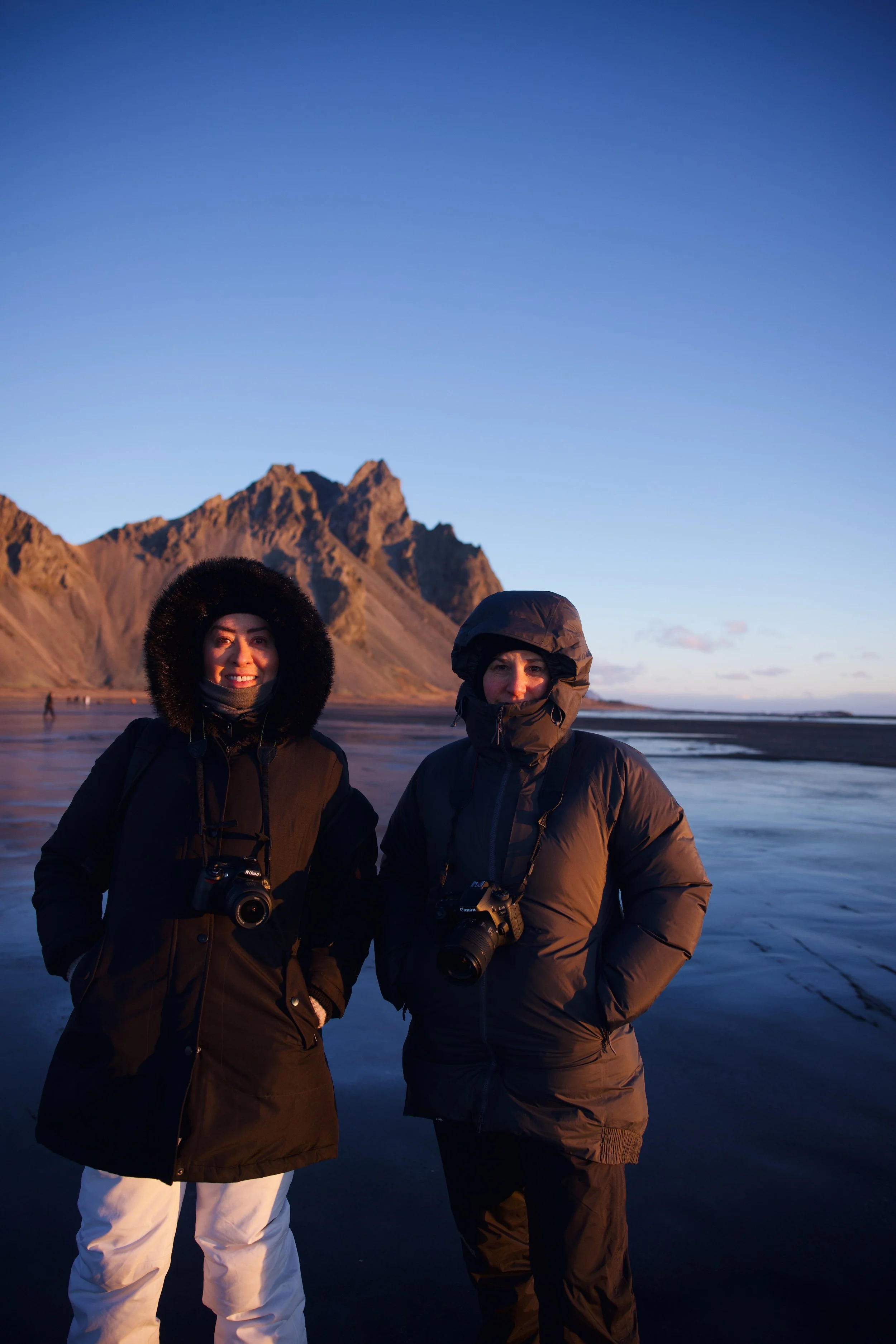 Exploramos juntas lugares como la playa de Reynisfjara, el glaciar Vatnajökull y la laguna glaciar de Jökulsárlón, capturando su magia tanto al amanecer como al atardecer. También nos sumergimos en la fotografía nocturna, intentando atrapar la danza de la aurora boreal bajo cielos despejados.